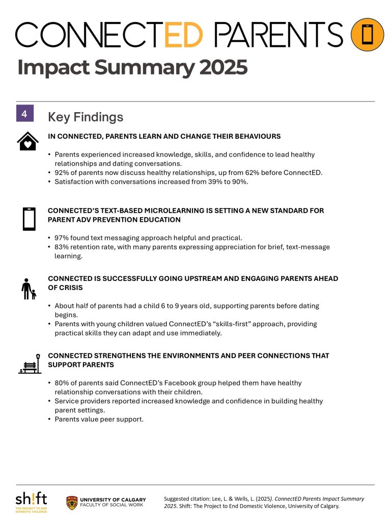 Here is a summary of ConnectED Parents' research findings and impact to date:
